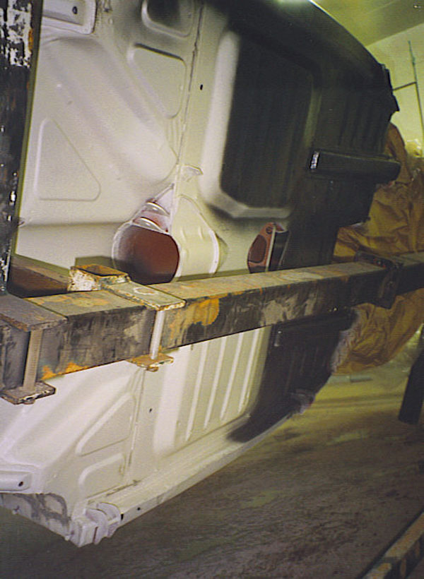 | 2002 begannen wir die Phase 2, die Unterbodengruppe, die Kurt allerdings viel aufwendiger als die Phase 1 veranschlagte. Es musste wieder viel demontiert werden, Kotflügel, Vorder- und Hinterachse, Kardanwelle und so weiter. Dann Unterbodenschutz entfernen, sandstrahlen. („Ich kann Dir jetzt nicht voraussagen, was an Reparaturblechen, Dengel- und Schweißarbeiten auf Dich zukommt, aber ich habe Dir das ja gesagt.“) Gut, dass ich bereits 1987 zwei Buckel geschlachtet und weitere Teile des Vorbesitzers gekauft hatte. Der Vorbesitzer aus Bocholt wollte sich damals einen ganz heißen, 2-Liter Buckel mit Doppelvergaser, Overdrive, Scheibenbremsen etc. zusammenbauen, hatte aber aufgegeben. Jetzt im Jahre 2002 wusste ich, dass ich viele Teile nie brauchen würde, unter anderem nicht das Overdrive-Getriebe mit geringster Laufleistung. Diese Teile bot ich Kurt im Gegengeschäft für seine Arbeit an; würden Neuteile bei der „Phase 2“ anfallen, müsste ich diese natürlich extra zahlen. Das war eine gute Vereinbarung, die sich mit dem privaten Budget gut vertrug. Der Winter 2003/2004 war ziemlich kalt, so dass Kurt etwas später fertig wurde. Ich besuchte ihn zwischendurch immer wieder einmal und traf einen erstaunten Kurt an: Er wollte gar nicht glauben, dass der Buckel nach 30 Jahren eine so gute Substanz aufwies. Das wichtigste Ergebnis der Sandstrahlarbeiten war für mich, dass der Buckel noch nie in seinem Leben geschweißt wurde. Es gab Stellen, in denen sich jetzt der Rost eingenistet hatte: Reserveradmulde, hintere Kofferraumsicke, rechte Längstraverse – das war’s schon. Jetzt war ich mir sicher, dass ich nicht nur einen seltenen Buckel hatte, weil ich als zweiter Besitzer bis zu Olof und Gunvor Sjölin eine wunderbare Fahrzeuggeschichte nachzeichnen konnte, sondern auch, weil der Buckel so kerngesund war. „Dieser Buckel mit der Fahrzeug-Nummer 401534 wird mir nie böse Überraschungen bereiten“, dachte ich mir. Für mich wurde der Wagen zur „Grauen Mauritius“, wenngleich ich auch sagen muss, dass das Grafitgrå nicht zu meinen Lieblingsfarben gehört, die californiaweiße, nebelgrüne und crémefarbige Lackierung präsentiert die Form des Buckels leichter und eleganter. Kurt nahm alles auseinander, was unter dem Buckel war. Und revidierte alles. Und lackierte alles. Und stellte den Buckel wieder auf die Räder. Die Lackierung in Originalfarbtönen, der Lackaufbau unter dem Aspekt des Schutzes und Langlebigkeit. „Ich habe als letzte Schicht einen trocken werdenden Wachs gespritzt, da bleibt im Gegensatz zum klebrigbleibenden kein Dreck hängen und bindet somit auch keine Feuchtigkeit“, erklärte mir Kurt und fügte an: „Da brauchst zukünftig unten nur noch Staub wischen“. Und das meinte Kurt ernst!