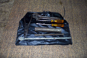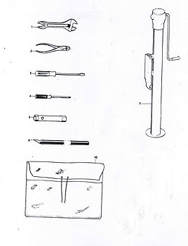 Die serienmäßig mitgelieferte Tasche mit Bordwerkzeug lag beim Kauf im Buckel neben dem (natürlich originalen) Wagenheber im gut erhaltenen Kofferraum. Erst Jahre später schenkte ich der Werkzeugtasche etwas Beachtung und merkte, dass zwei Teile fehlten, was natürlich ein nicht haltbarer Zustand war: der "skiftnyckel" und der "skruvmejsel", der verstellbare Schraubenschlüssel und der Schlitzschraubendreher.