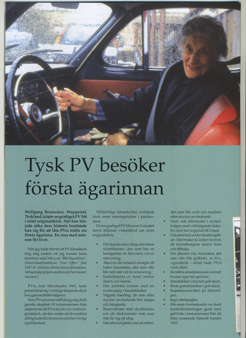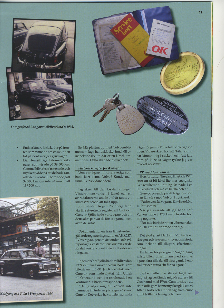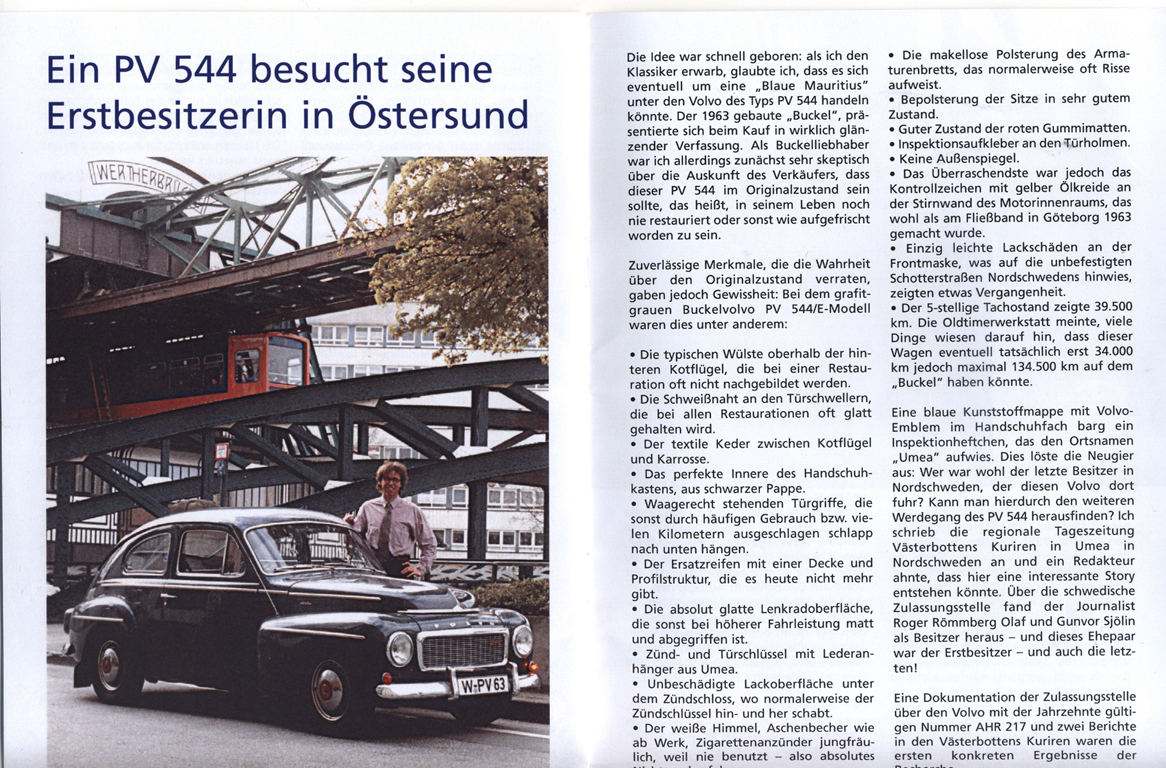 Der erste Bericht war 1994 in der Västerbottons Kuriren, in dem Roger Rönnberg meine Anfrage nach dem Erstbesitzer recherchierte und über den PV 544 aus Umeå berichtete, der nun in Wuppertal lief.