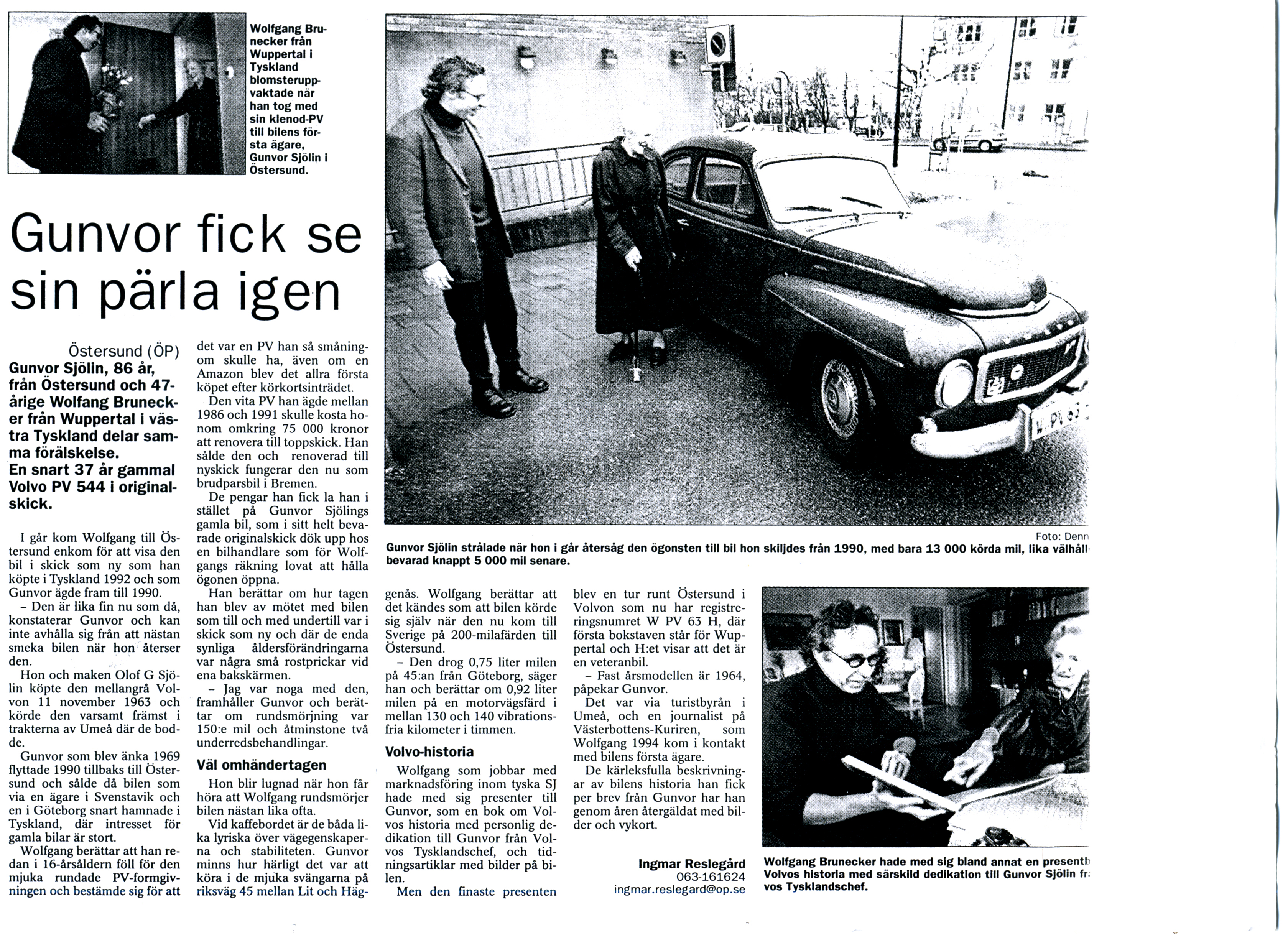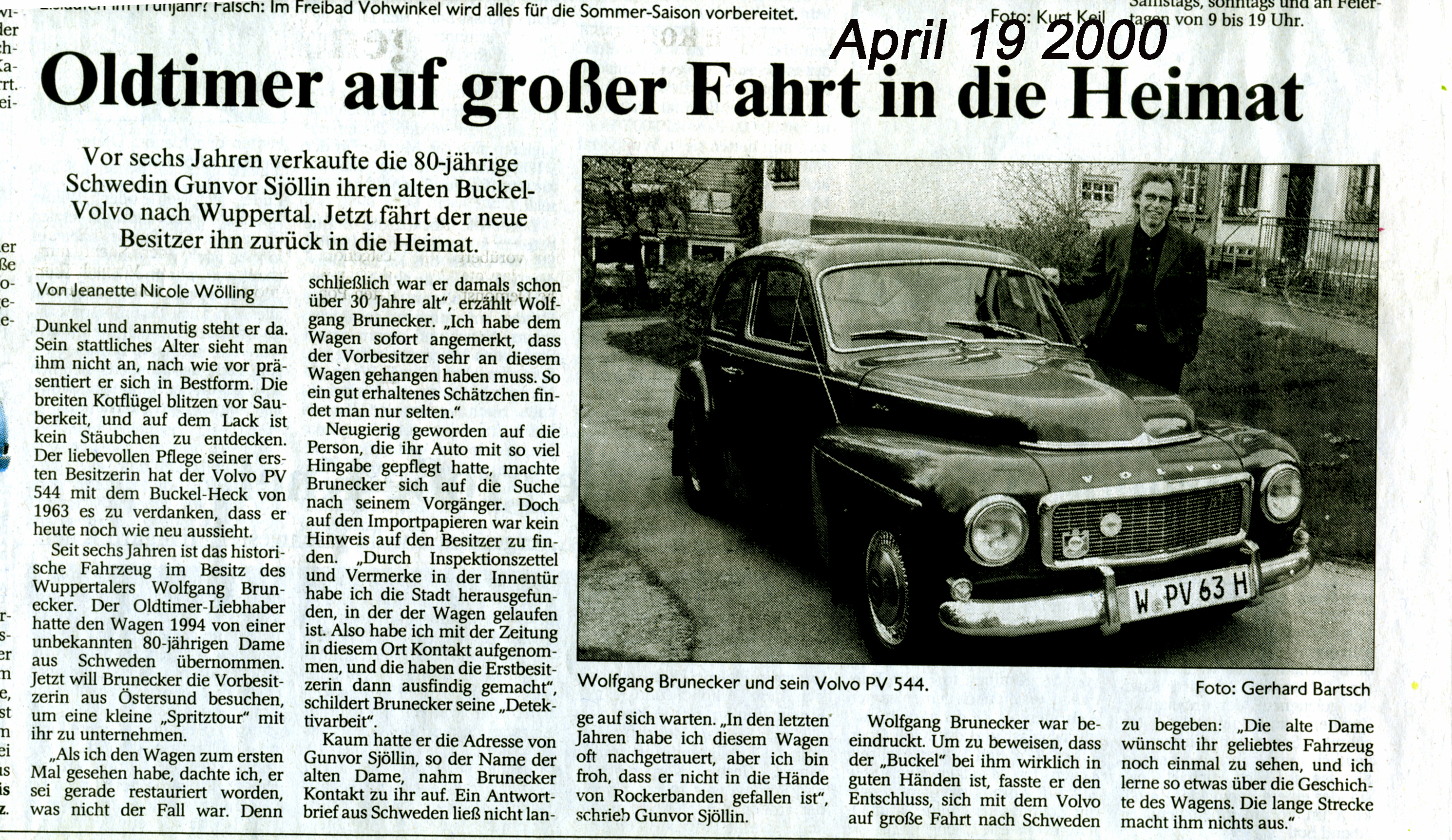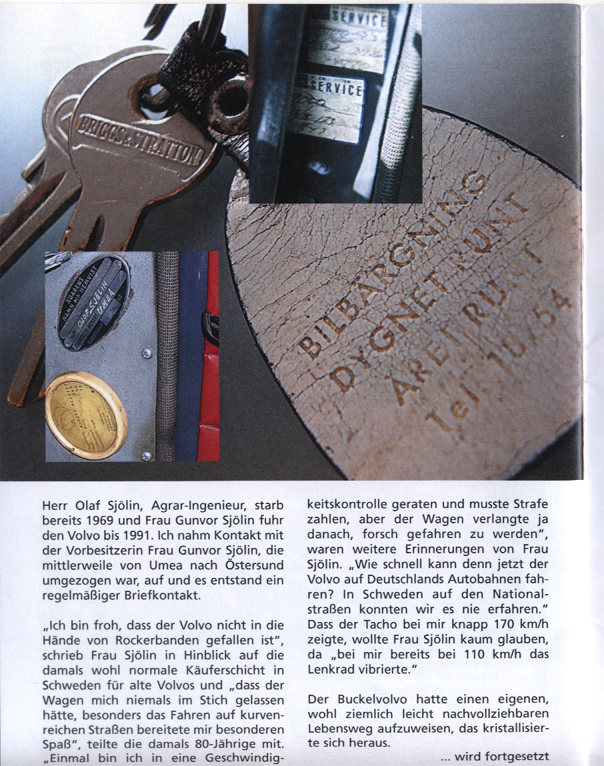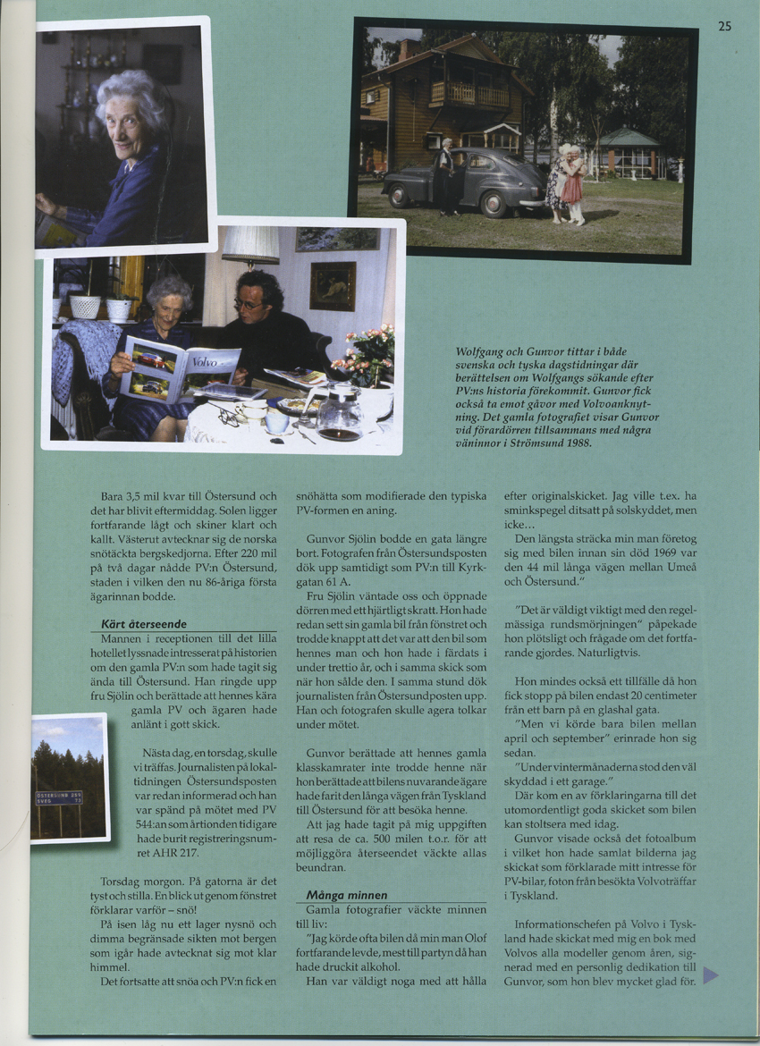 Der erste Bericht war 1994 in der Västerbottons Kuriren, in dem Roger Rönnberg meine Anfrage nach dem Erstbesitzer recherchierte und über den PV 544 aus Umeå berichtete, der nun in Wuppertal lief.