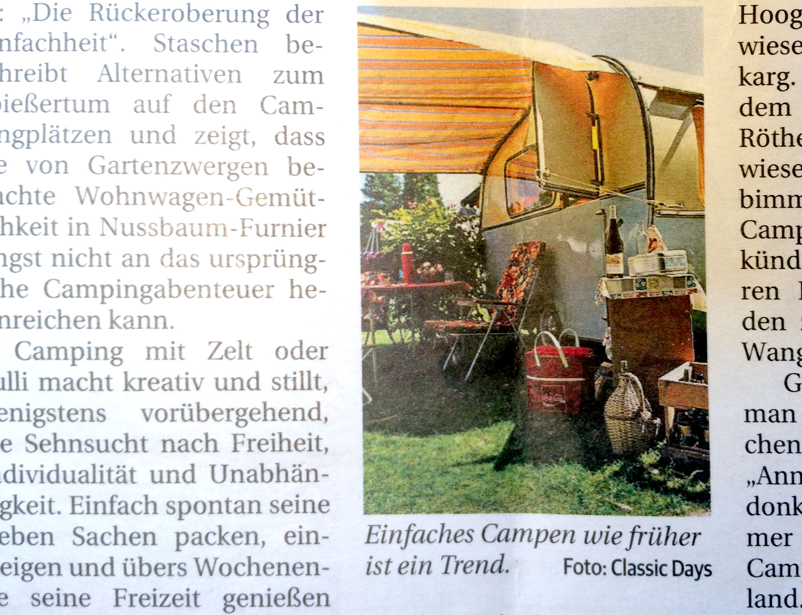 Reisemobile &Caravans nahm ein Motiv unseres Besuchs auf den Classic Days 2015 für den Artikel "Zurück zur Einfachkeit".