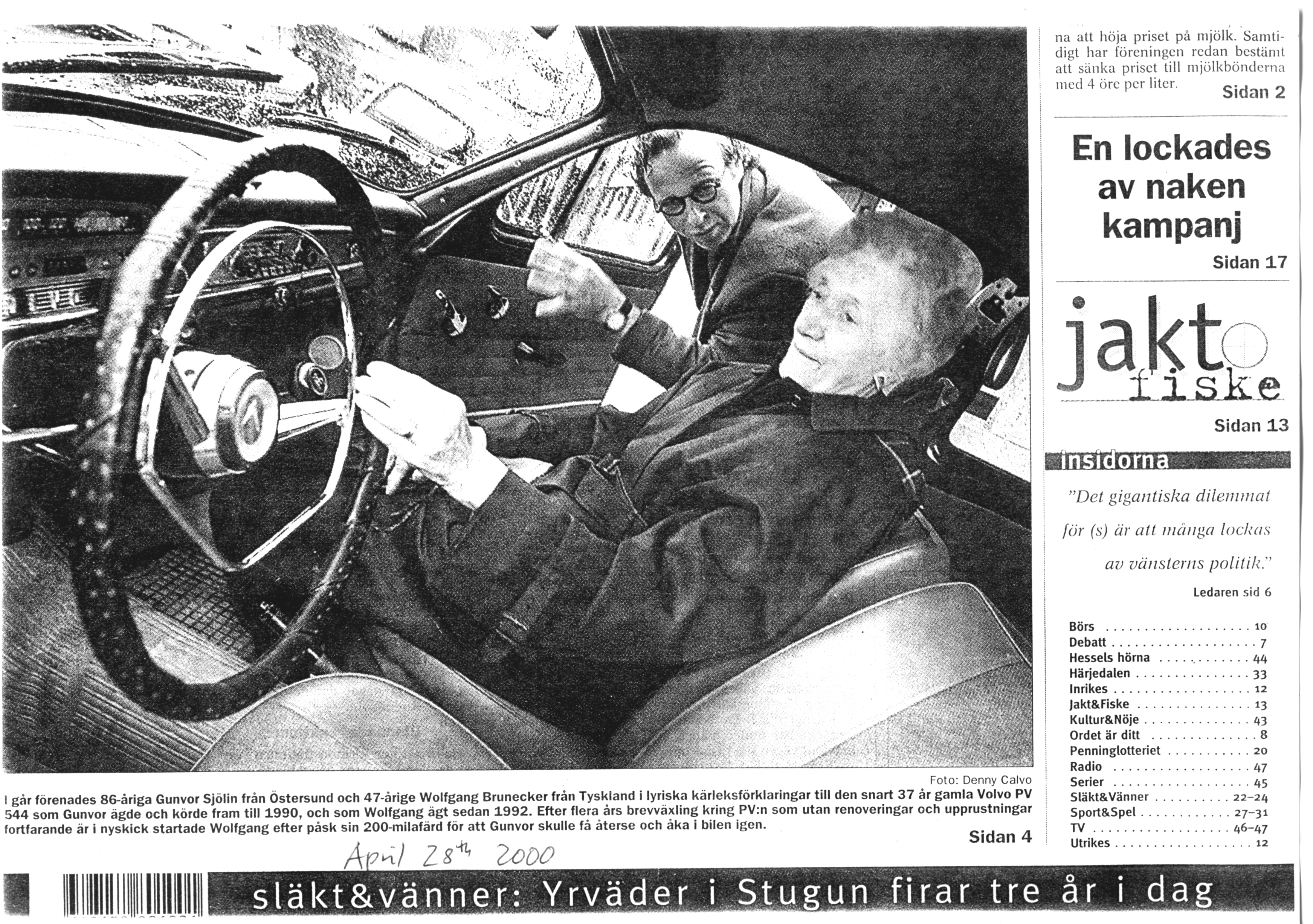 Östersund Postans titelte sogar am 28. April 2000 meinen Besuch bei Gunvor in Ostersund auf der Seite 1.